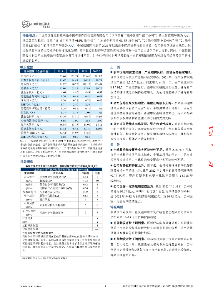 中诚信:重庆渝中国有资产经营管理有限公司2022年度跟踪评级报告.pdf