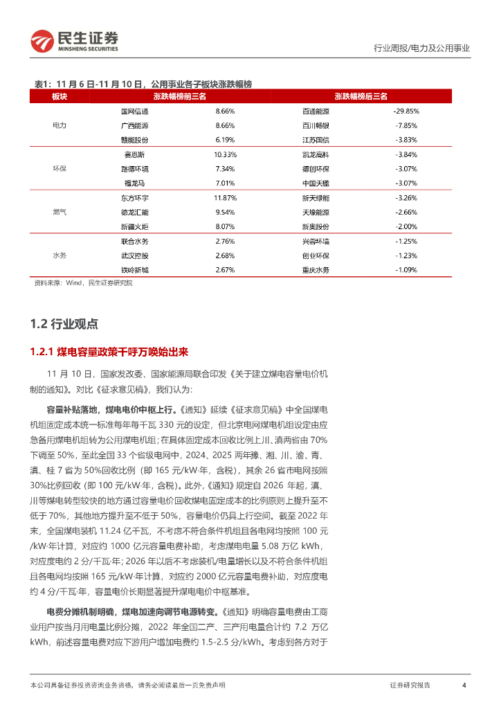 民生证券:公用事业行业周报(2023年第44周):煤电容量政策落地,PPP新机制提升民企参与度.pdf
