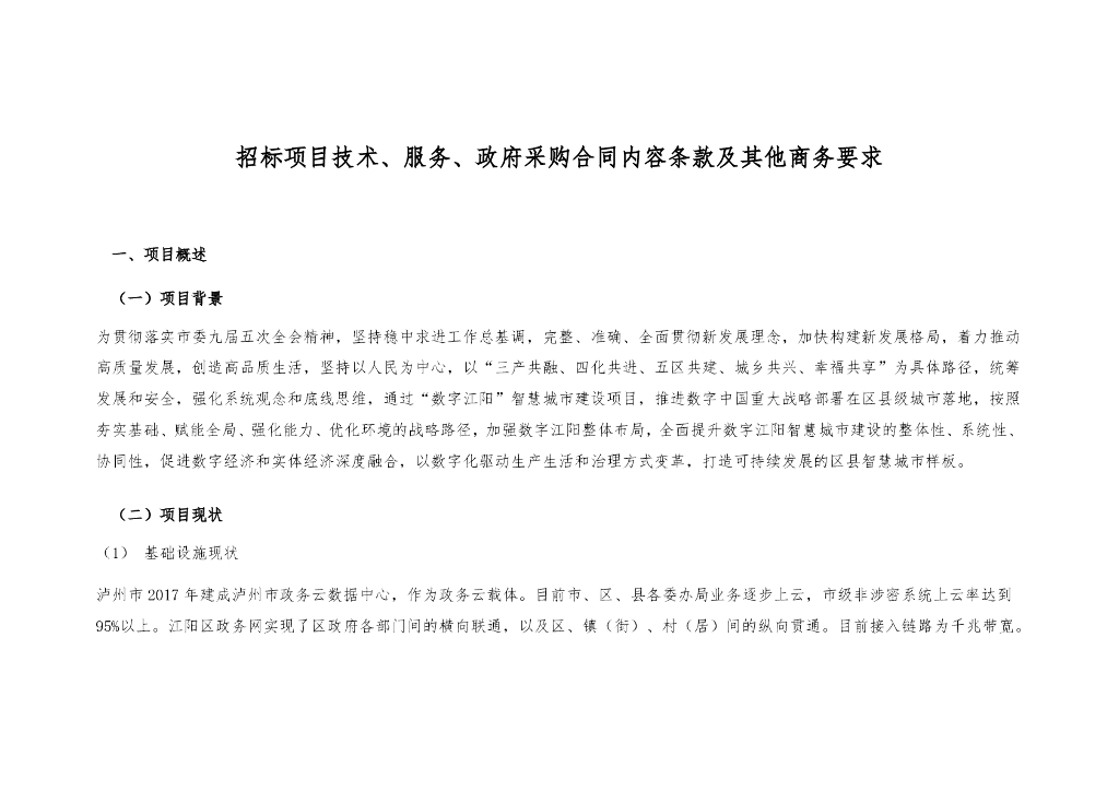 智慧城市-“数字江阳”智慧城市建设项目一期采购需求招标文件.pdf