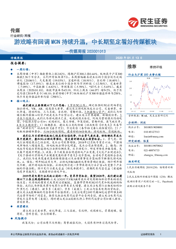 民生证券:传媒周报:游戏略有回调MCN持续升温,中长期坚定看好传媒板块.pdf