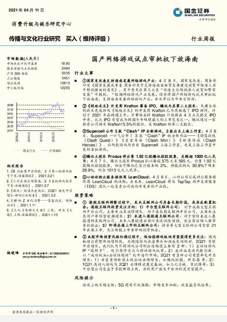 国金证券:传播与文化行业研究周报:国产网络游戏试点审批权下放海南.pdf