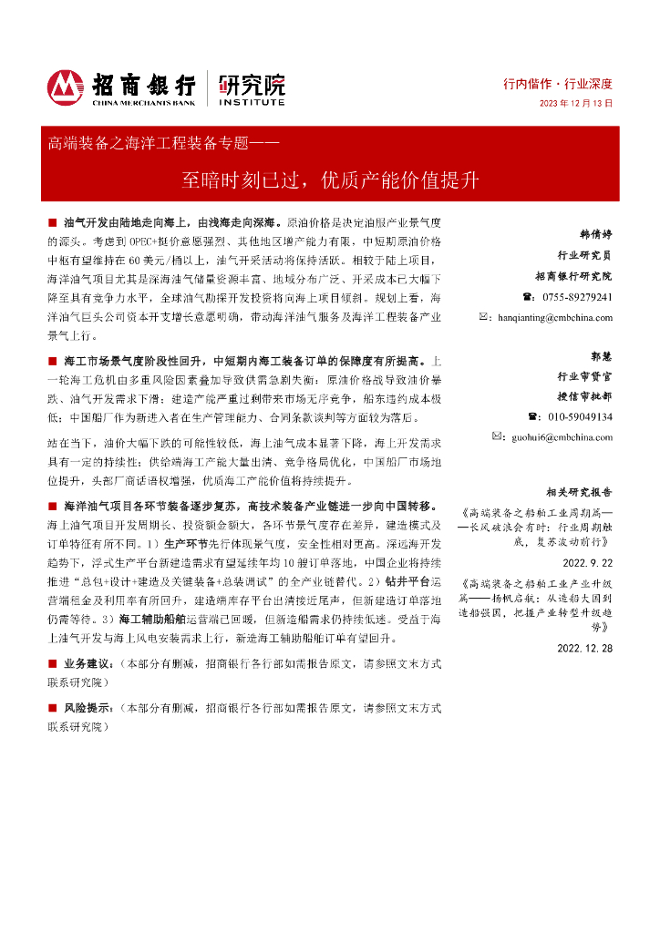 招商银行:高端装备之海洋工程装备行业专题:至暗时刻已过,优质产能价值提升.pdf