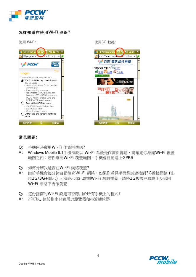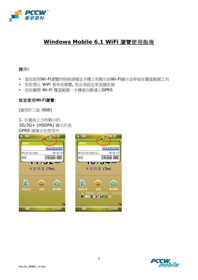 电讯盈科 Windows Mobile 6.1 WiFi 浏览使用指南.pdf