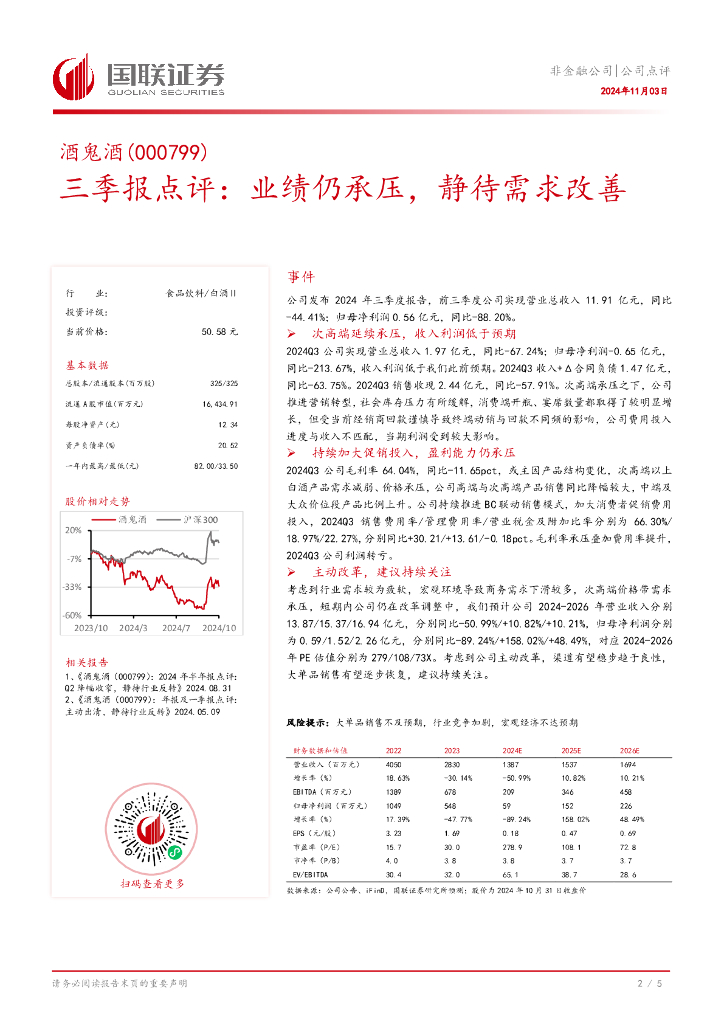 国联证券:酒鬼酒(000799)-三季报点评:业绩仍承压,静待需求改善.pdf
