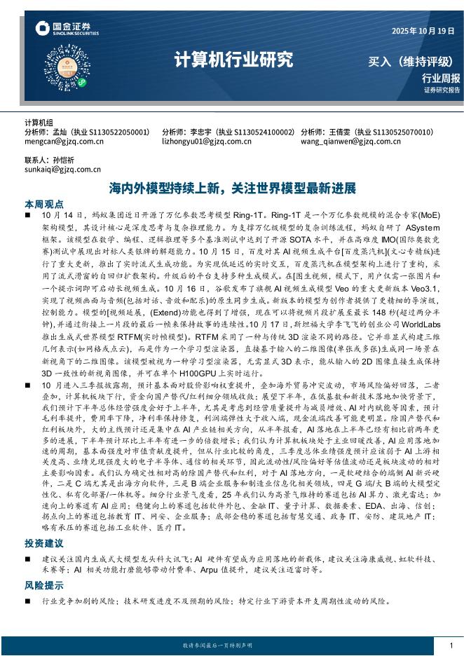 国金证券:计算机行业研究:海内外模型持续上新,关注世界模型最新进展.pdf
