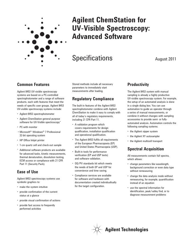 Agilent ChemStation for UV-visible Spectroscopy: Advanced Software 数据手册.pdf