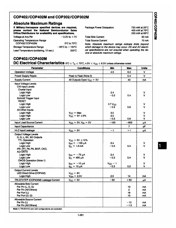 National Semiconductor COP402/COP402M 数据手册.pdf