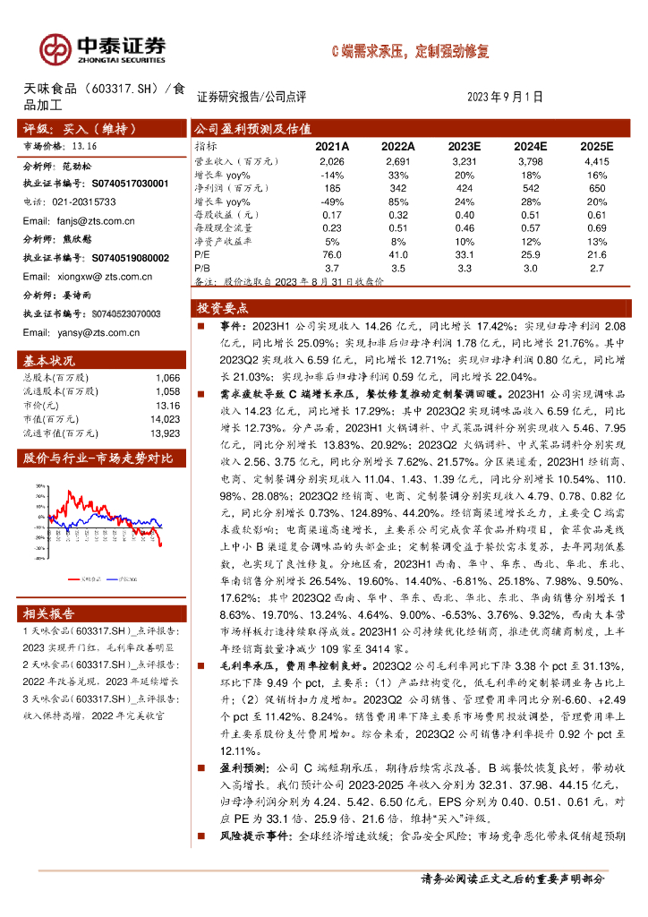 中泰证券:天味食品(603317)-C端需求承压,定制强劲修复.pdf