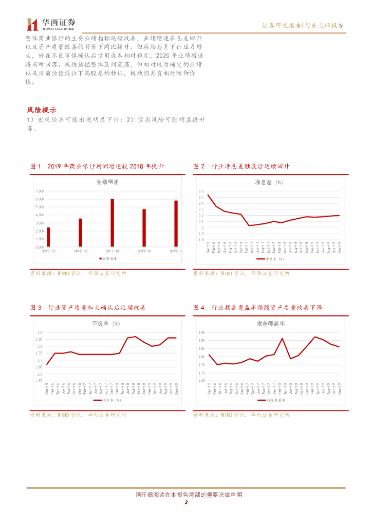 华西证券:银行:2019年业绩增速同比提升,息差回升乏力不良平稳.pdf