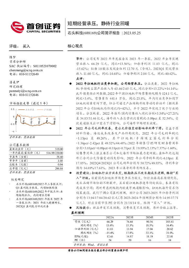 首创证券:石头科技(688169)-公司简评报告:短期经营承压,静待行业回暖.pdf