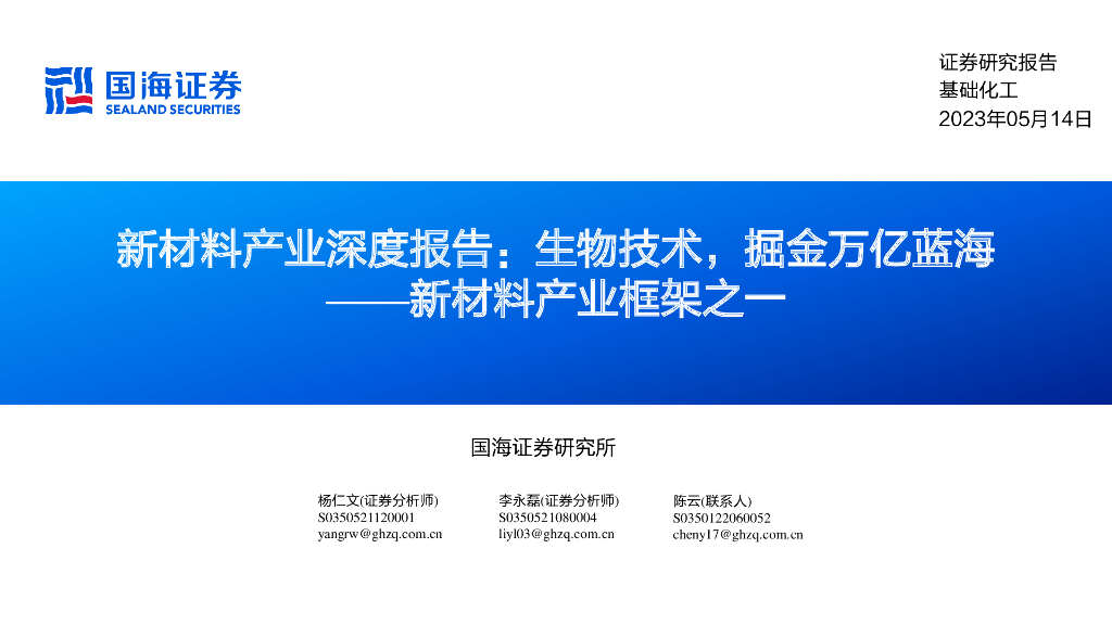 国海证券:新材料产业框架之一:新材料产业深度报告:生物技术,掘金万亿蓝海.pdf