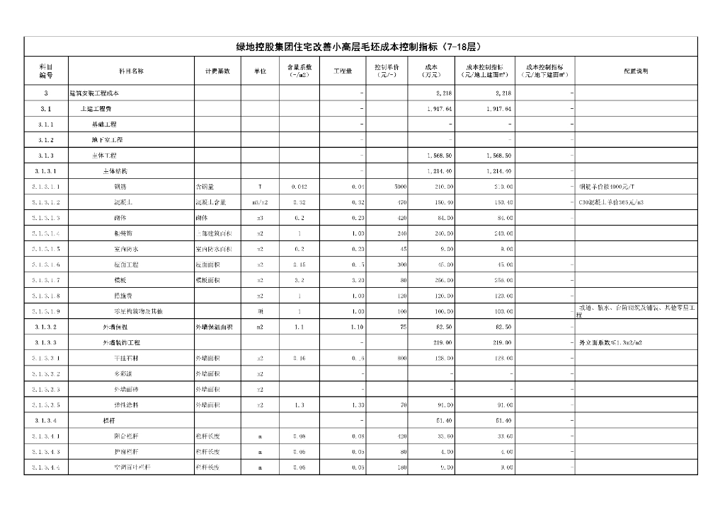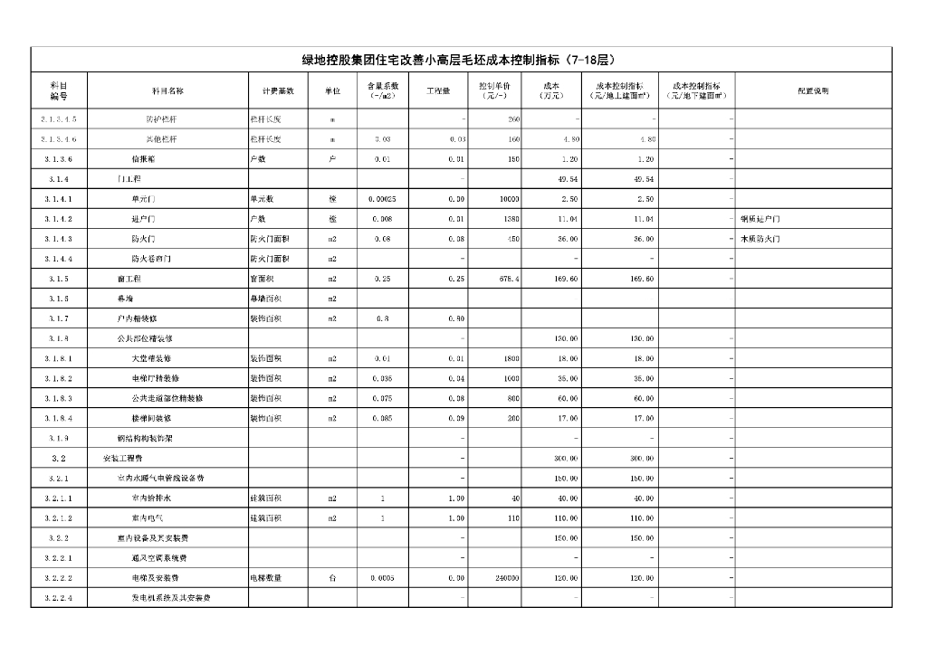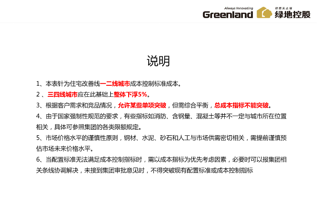 改善成本控制绿地-住宅改善线(三四线)产品手册 - 成本控制指标表.pdf