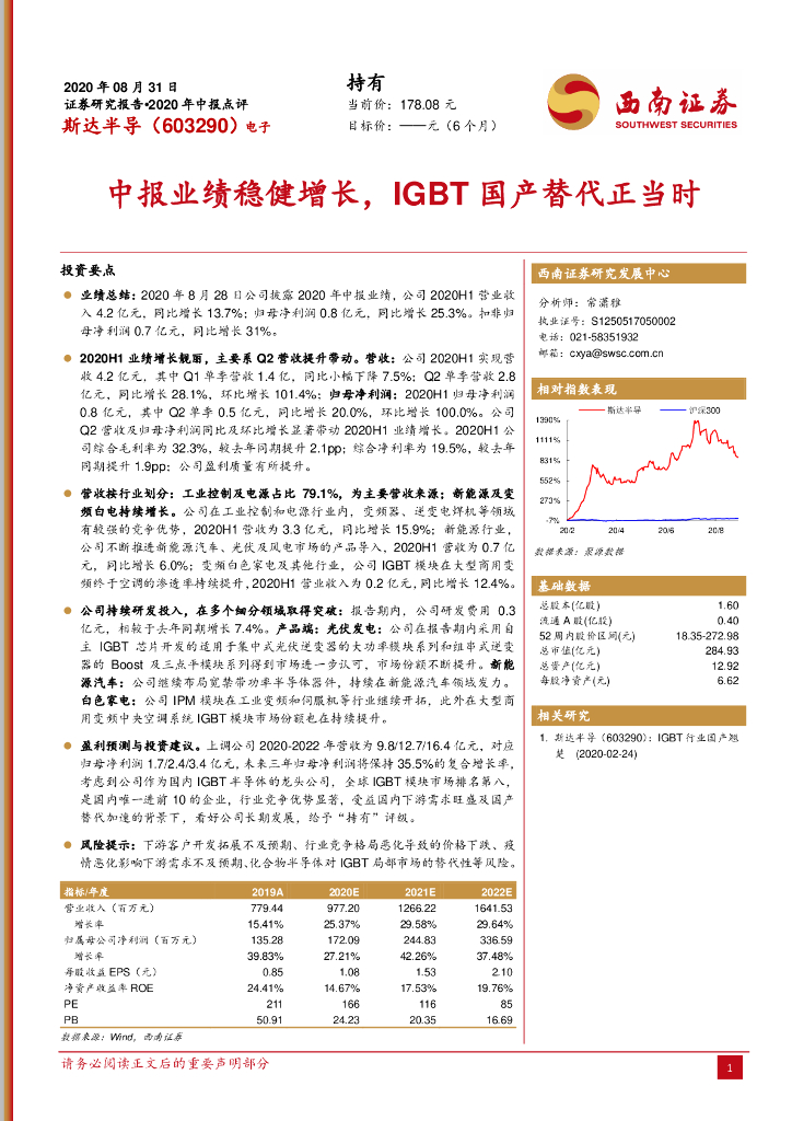 西南证券:斯达半导(603290)-中报业绩稳健增长,IGBT国产替代正当时.pdf