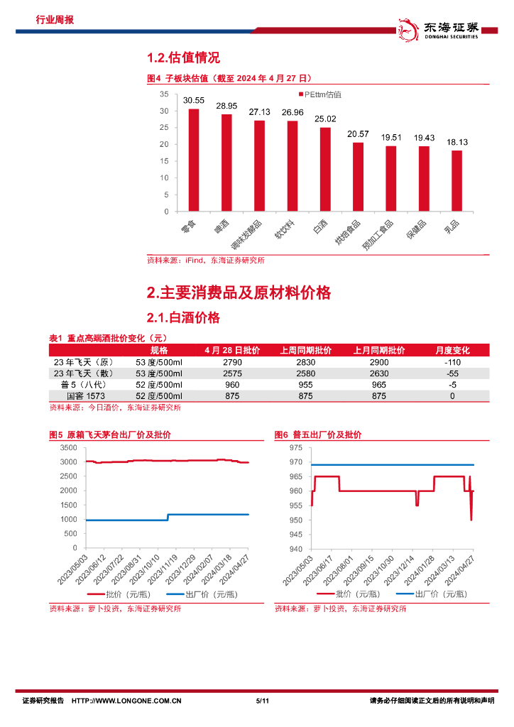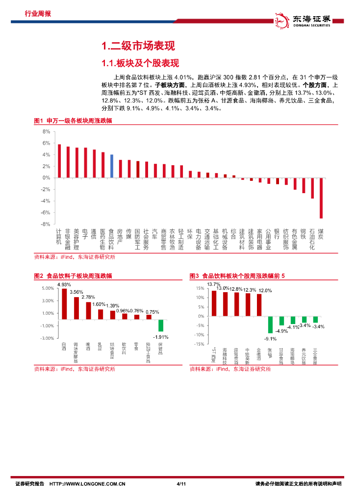 东海证券:食品饮料行业周报:白酒龙头韧性强劲,关注绩优方向.pdf