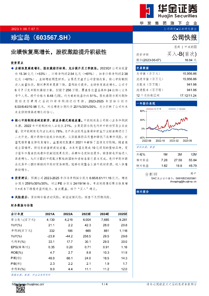 华金证券:珍宝岛(603567)-业绩恢复高增长,股权激励提升积极性.pdf