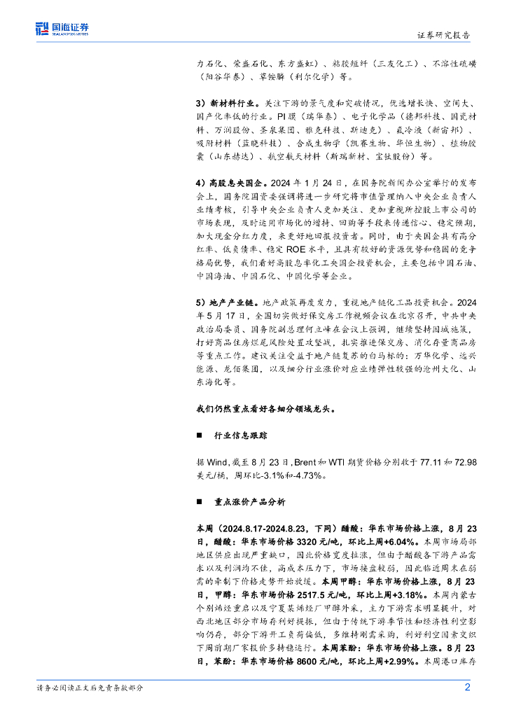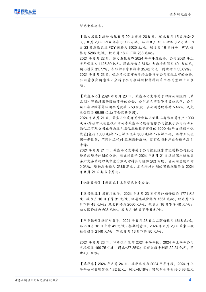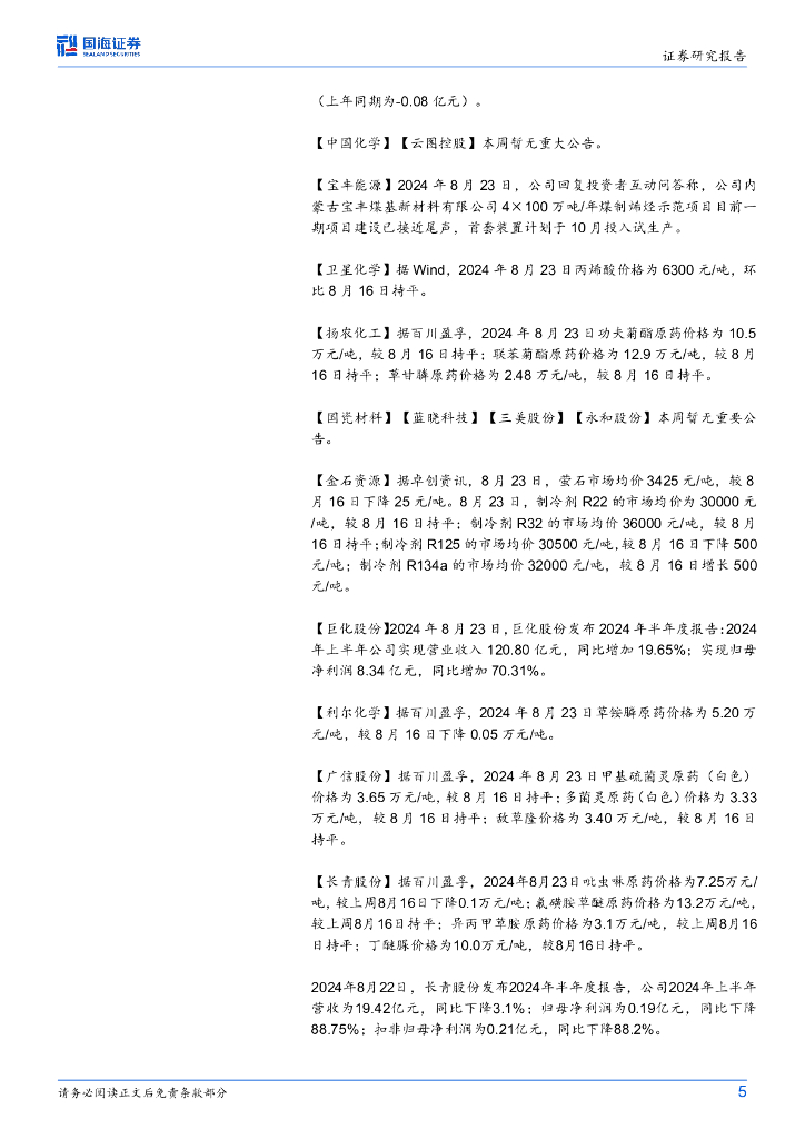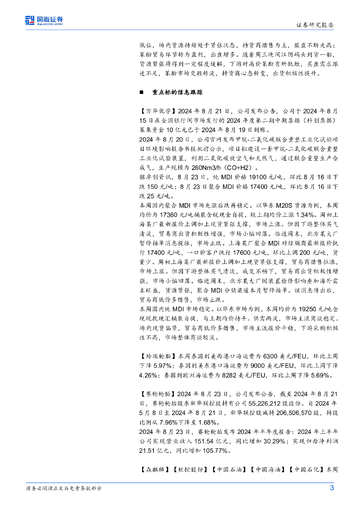国海证券:基础化工行业周报:醋酸、甲醇、苯酚价格上涨,赛轮轮胎、华鲁恒升净利润同比增长.pdf