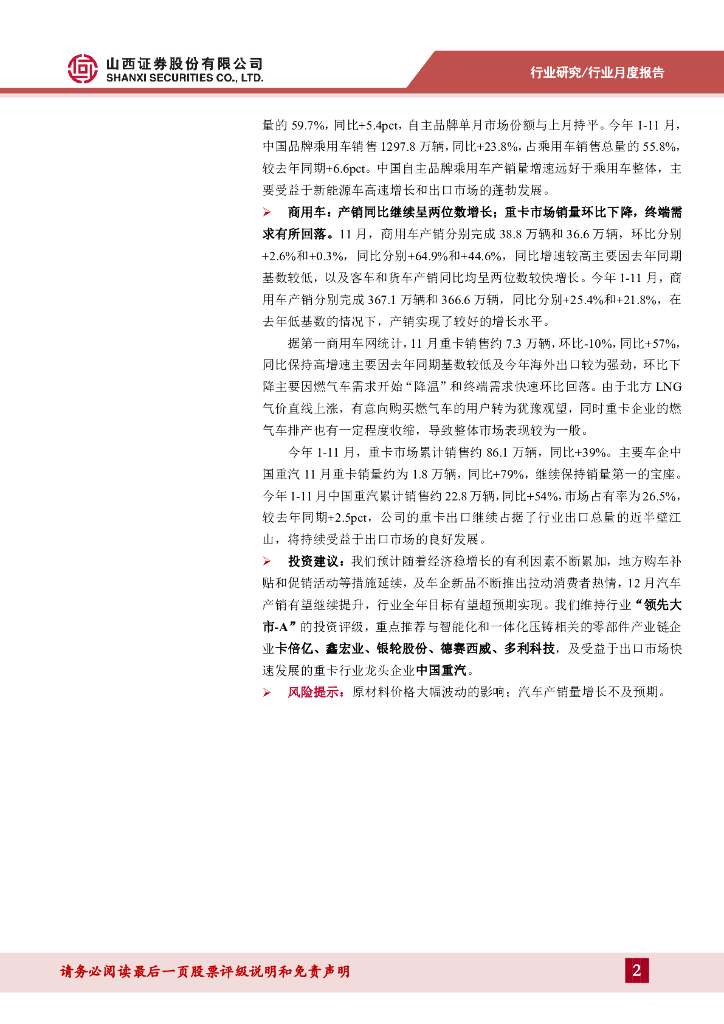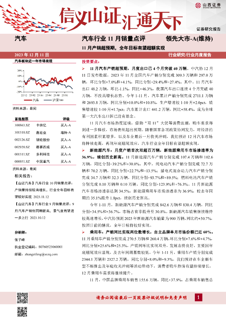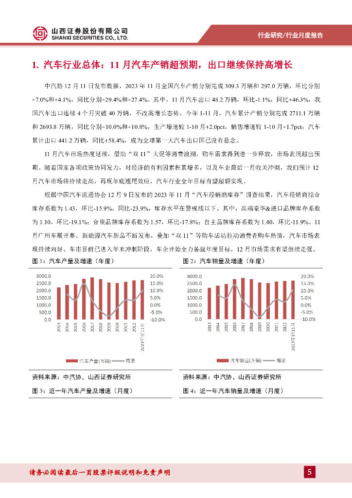 山西证券:汽车行业11月销量点评:11月产销超预期,全年目标有望超额实现.pdf