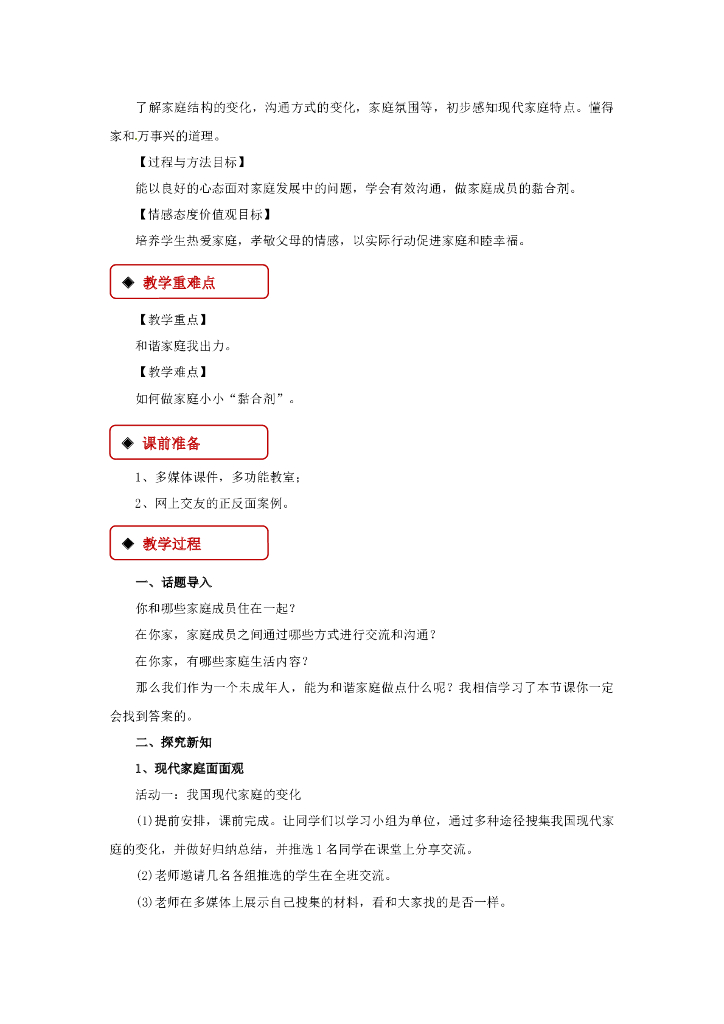 七年级上册 初中道德与法治7.3《让家更美好》教学设计1.doc