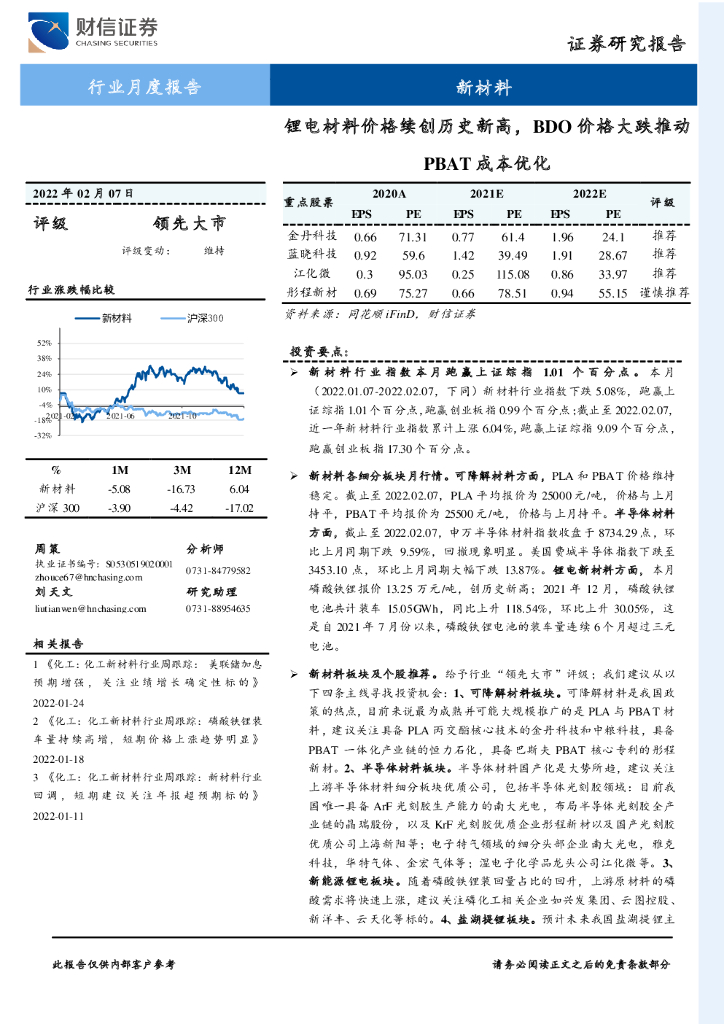 财信证券:新材料行业月度报告:锂电材料价格续创历史新高,BDO价格大跌推动PBAT成本优化.pdf