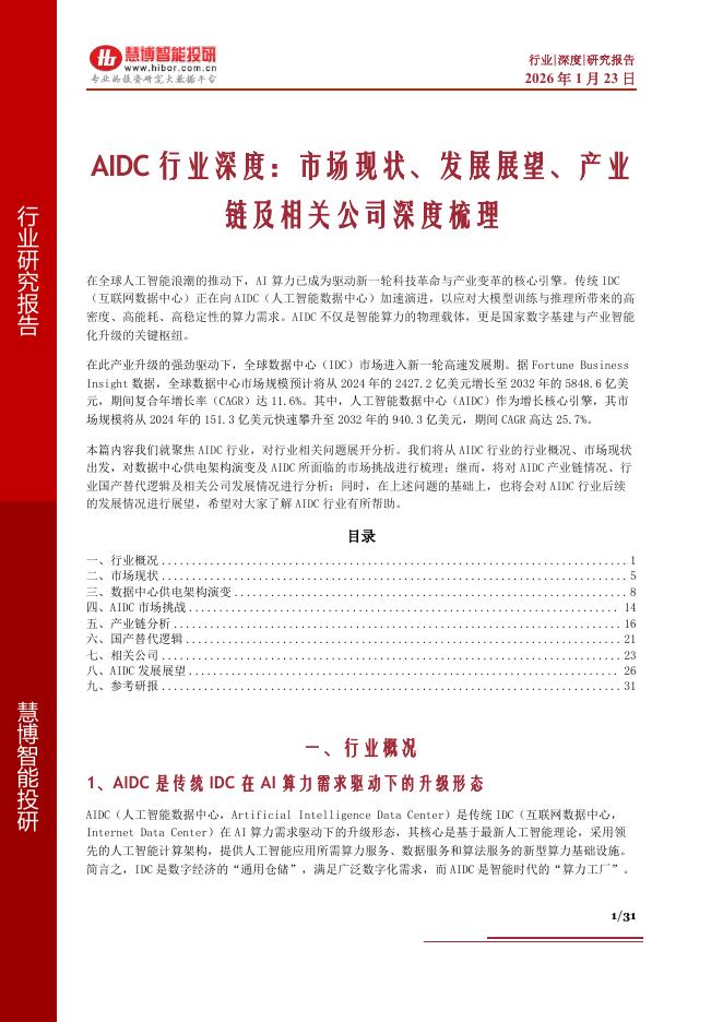 慧博智能投研:AIDC行业深度:市场现状、发展展望、产业链及相关公司深度梳理.pdf