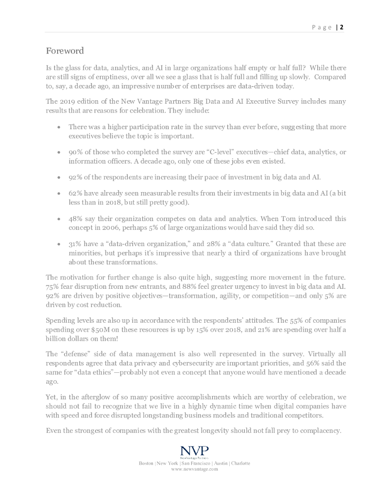 NewVantage Partners:2019大数据高管调查摘要(英文版).pdf