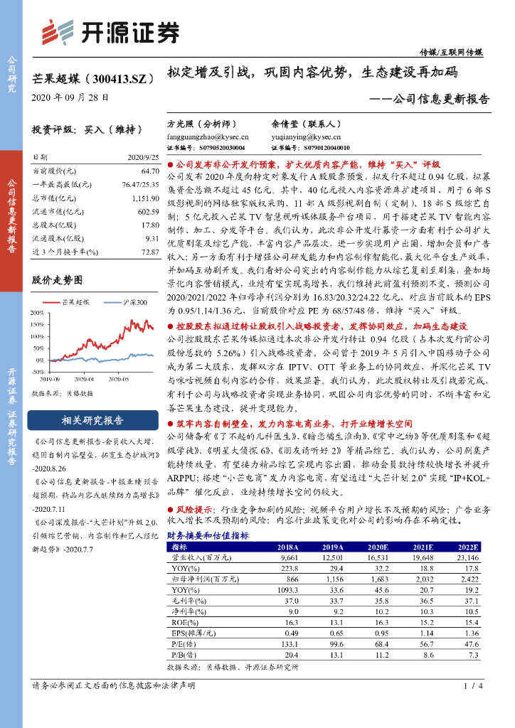 开源证券:芒果超媒(300413)-公司信息更新报告:拟定增及引战,巩固内容优势,生态建设再加码.pdf