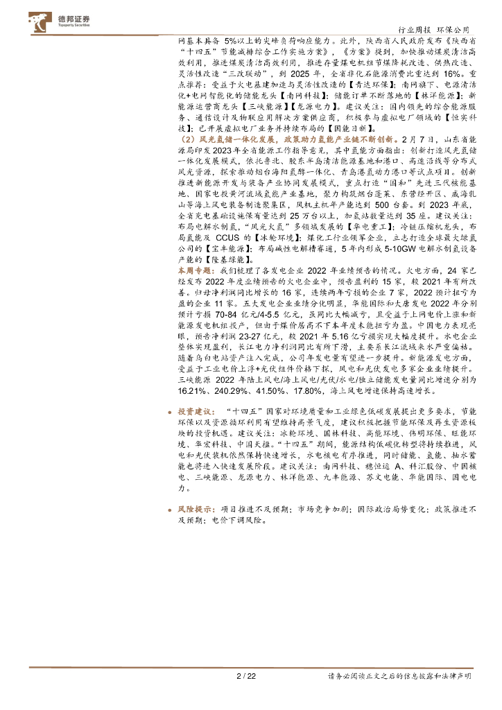德邦证券:环保与公用事业周报:电力企业2022业绩预告出炉,风光水火整体向好.pdf