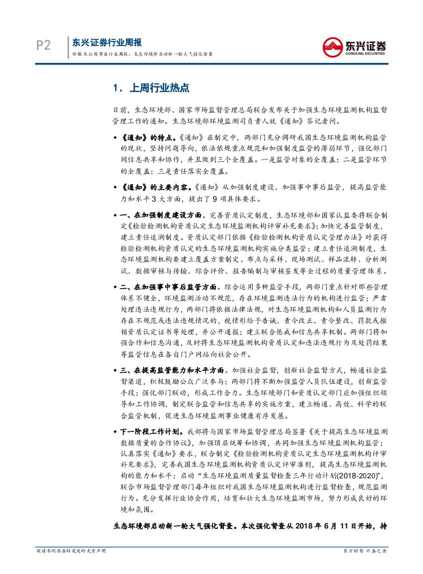 东兴证券:环保及公用事业行业周报:生态环境部启动新一轮大气强化督查.pdf