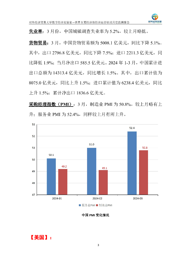 对外经济贸易大学:世界主要经济体经济运行状况月度监测报告(2024年3月).pdf