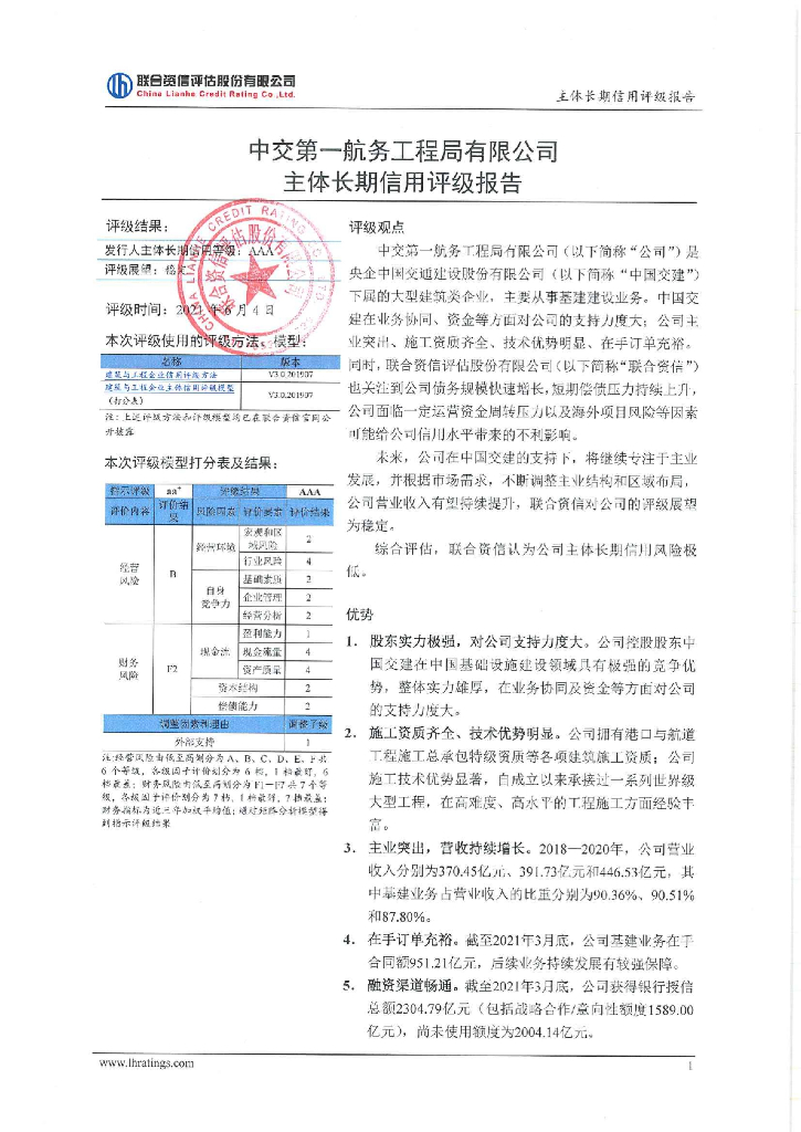 联合资信:中交第一航务工程局有限公司主体长期信用评级报告.pdf