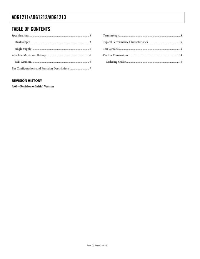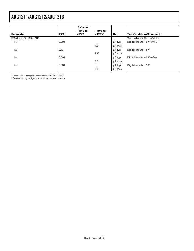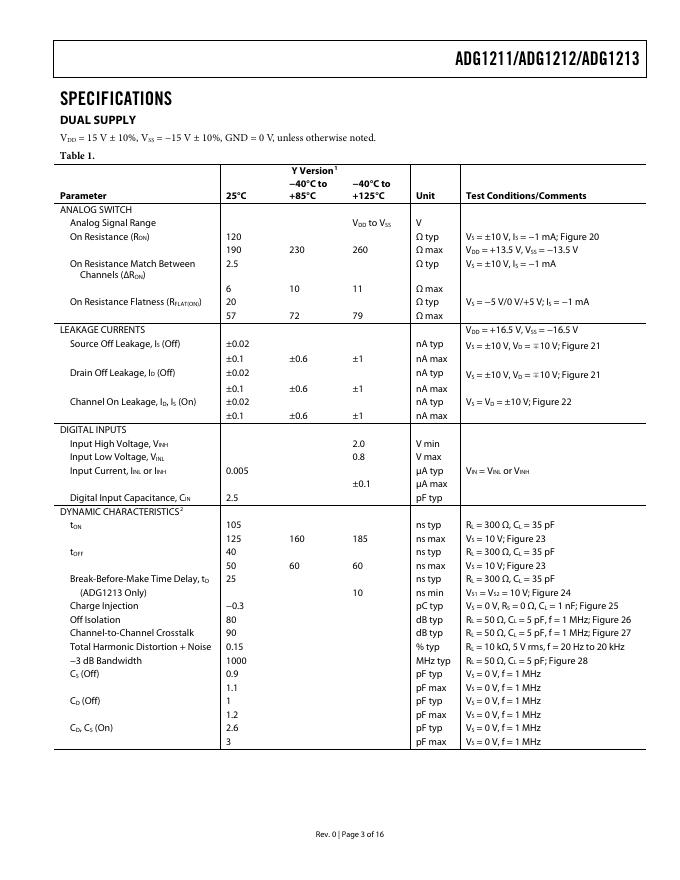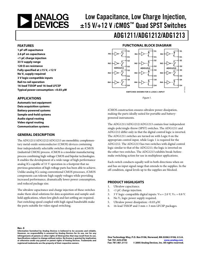 ANALOG DEVICES Low Capacitance, Low Charge Injection, ±15 V/+12 V iCMOS™ Quad SPST Switches ADG1211/ADG1212/ADG1213 数据手册.pdf