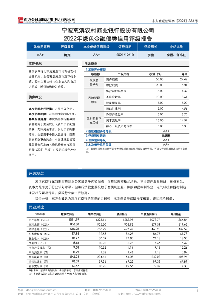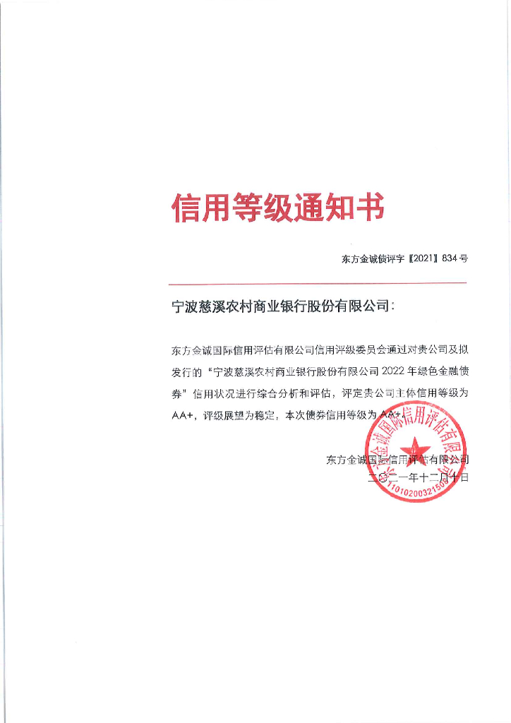东方金诚:宁波慈溪农村商业银行股份有限公司2022年绿色金融债券信用评级报告.pdf
