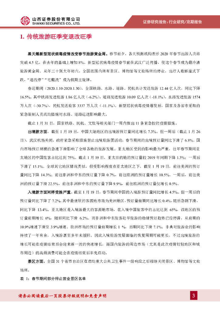 山西证券:社会服务2020年春节旅游数据点评:黑天鹅新型冠状病毒疫情改变春节旅游黄金周.pdf