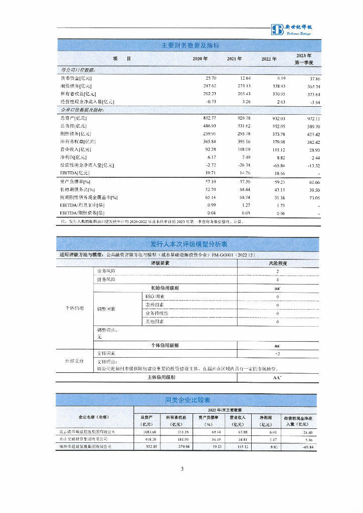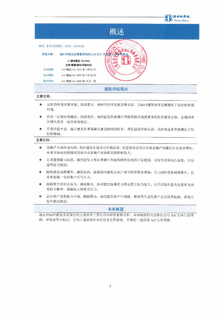 新世纪:福州市建设发展集团有限公司主体信用评级报告及跟踪评级安排.pdf