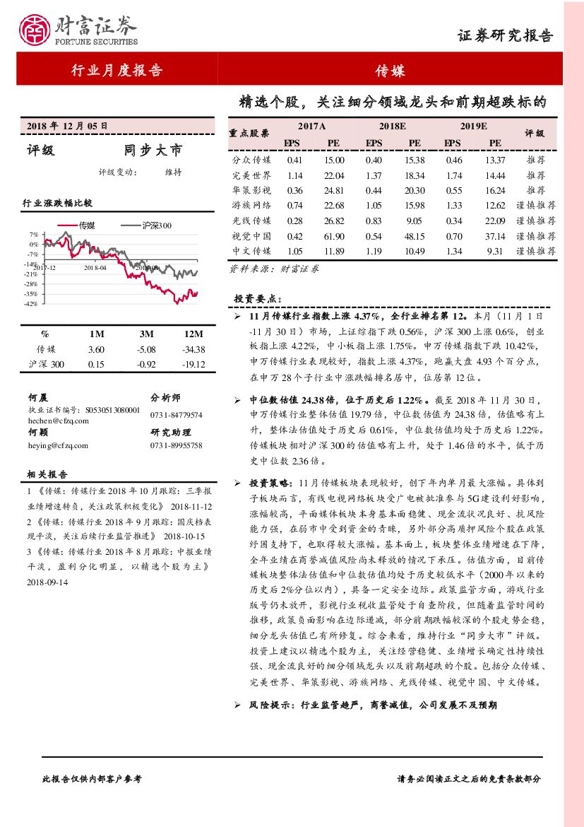 财富证券:传媒行业月度报告:精选个股,关注细分领域龙头和前期超跌标的.pdf