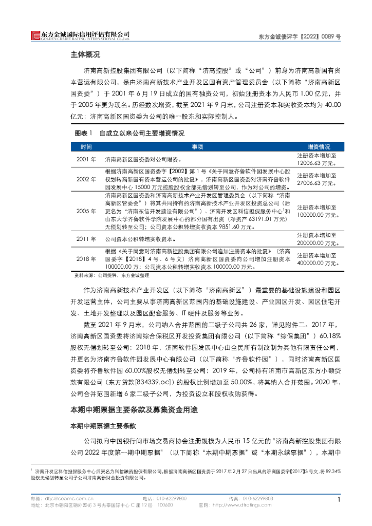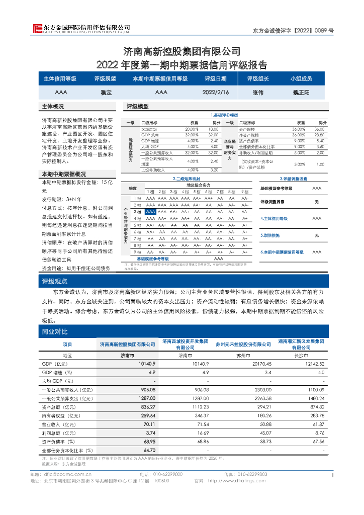 东方金诚:济南高新控股集团有限公司2022年度第一期中期票据信用评级报告.pdf