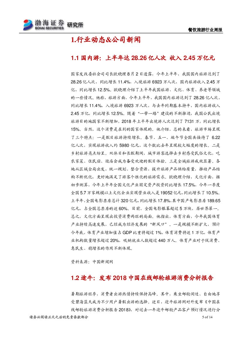渤海证券:餐饮旅游行业周报:上半年国内游人次超28亿 国内旅游市场稳健发展.pdf