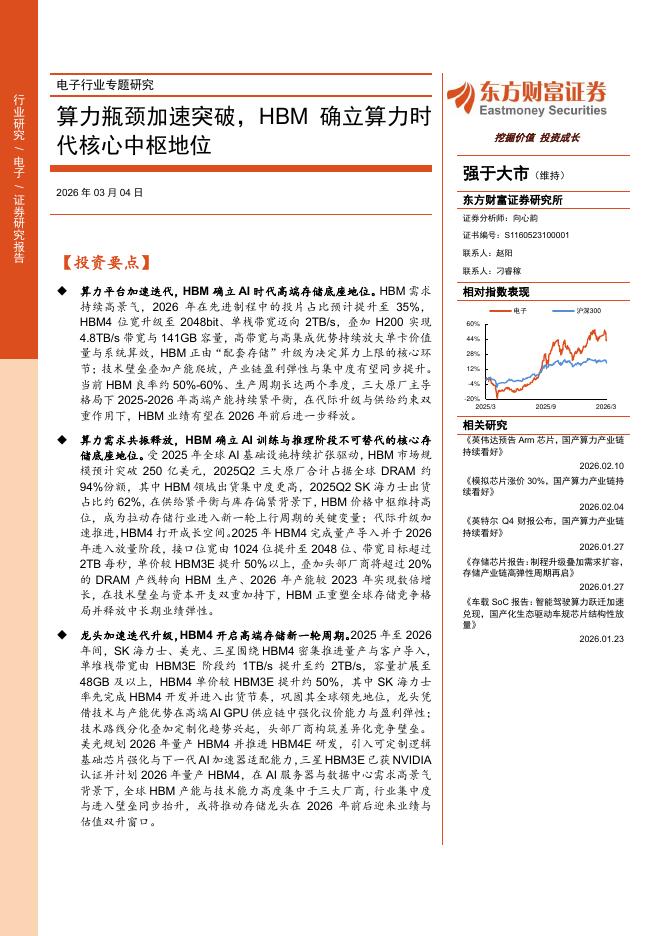 东方财富证券:电子行业专题研究:算力瓶颈加速突破,HBM确立算力时代核心中枢地位.pdf