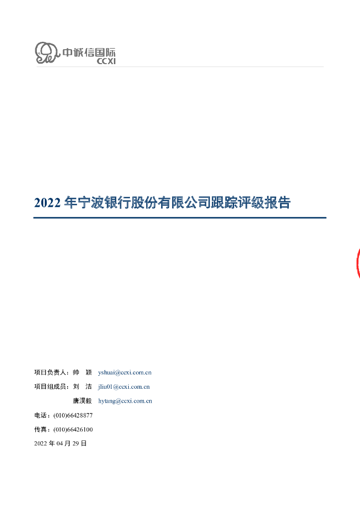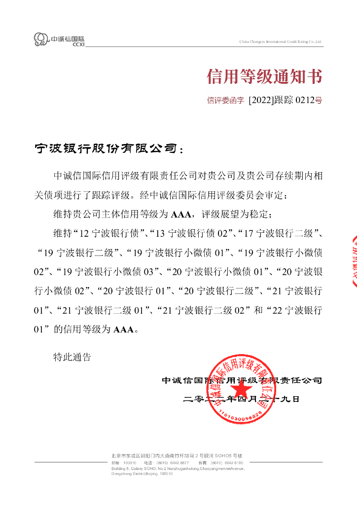 中诚信:2022年宁波银行股份有限公司跟踪评级报告.pdf