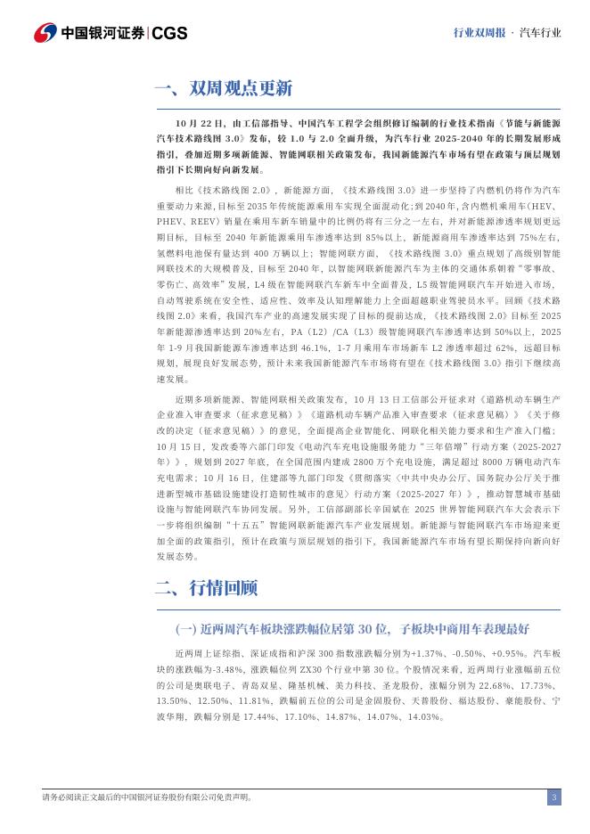 中国银河:汽车行业双周报:《技术路线图3.0》发布,引领市场长期向好向新发展.pdf