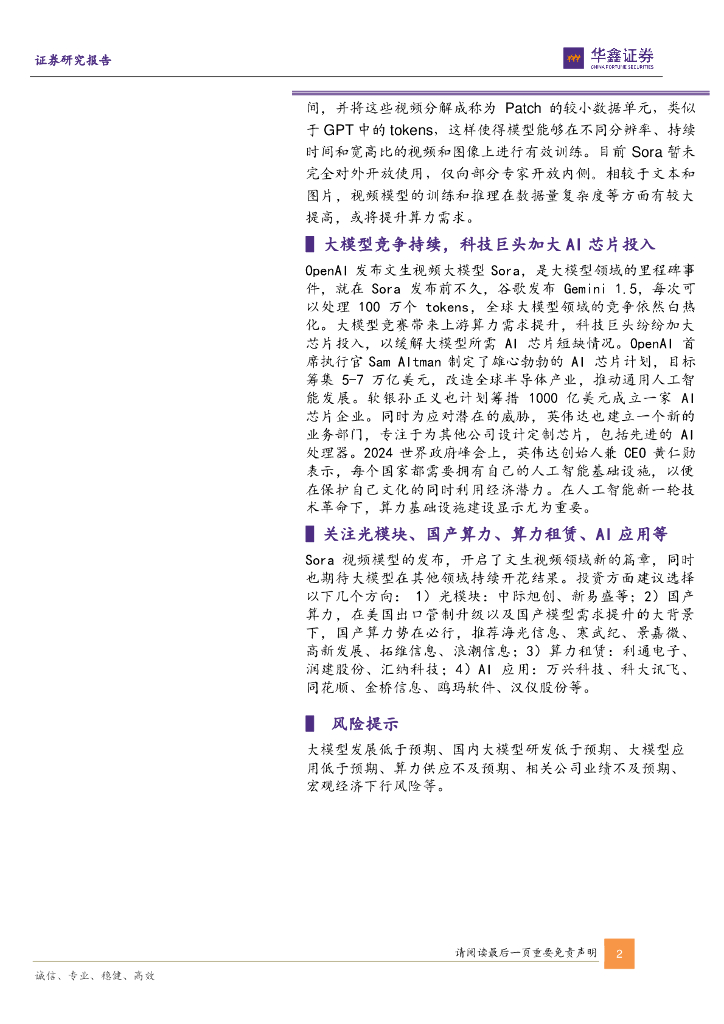 华鑫证券:计算机行业点评报告:Sora开启视频生成领域新篇章,科技巨头加大AI芯片投入.pdf