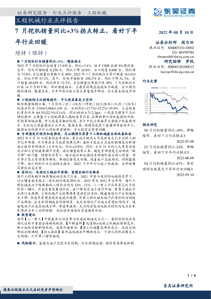 东吴证券:工程机械行业点评报告:7月挖机销量同比+3%拐点转正,看好下半年行业回暖.pdf