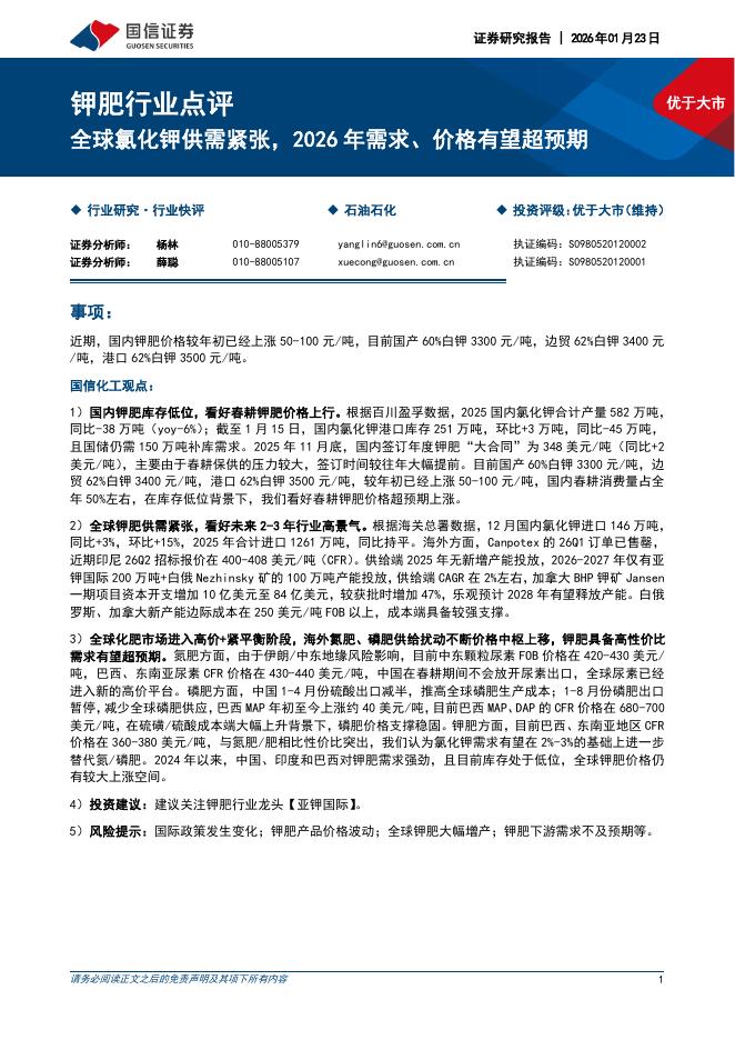 国信证券:钾肥行业点评:全球氯化钾供需紧张,2026年需求、价格有望超预期.pdf