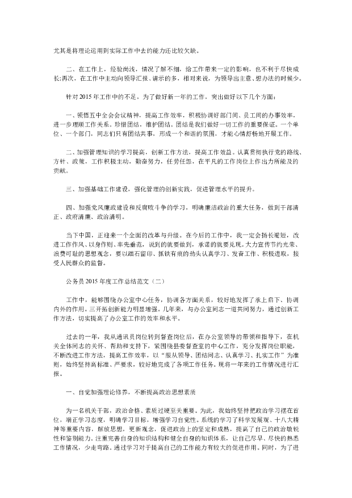 公务员2015年度工作总结范文(2篇).doc