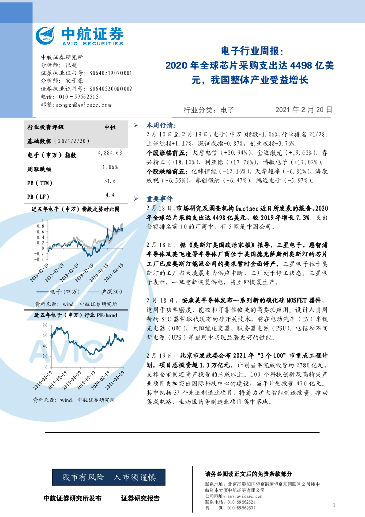 中航证券:电子行业周报:2020年全球芯片采购支出达4498亿美元,我国整体产业受益增长.pdf