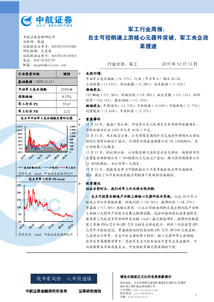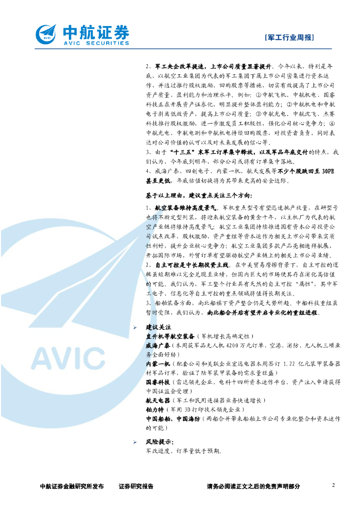 中航证券:军工行业周报:自主可控倒逼上游核心元器件突破,军工央企改革提速.pdf