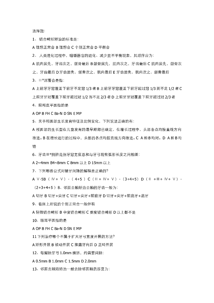 《口腔正畸学》口腔正畸学习题.pdf