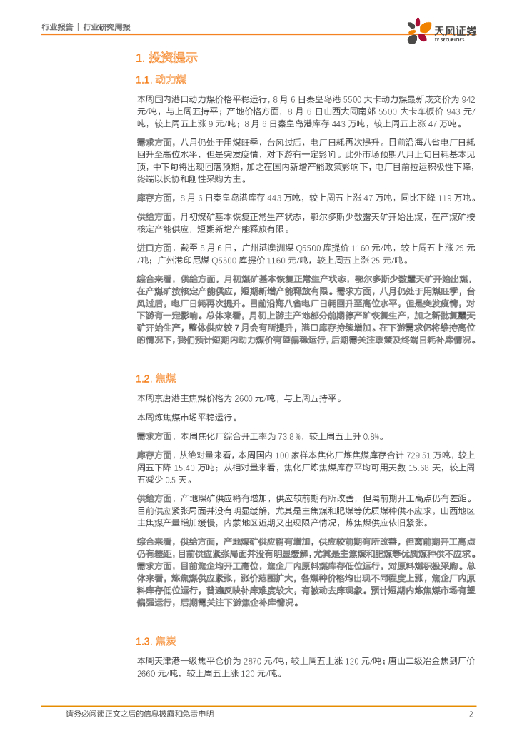 天风证券:一周煤炭动向:炼焦煤价持续强势,带动焦炭市场开启上涨.pdf