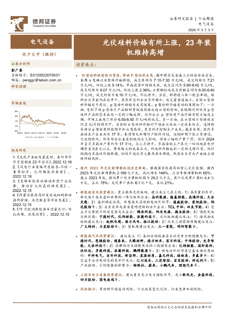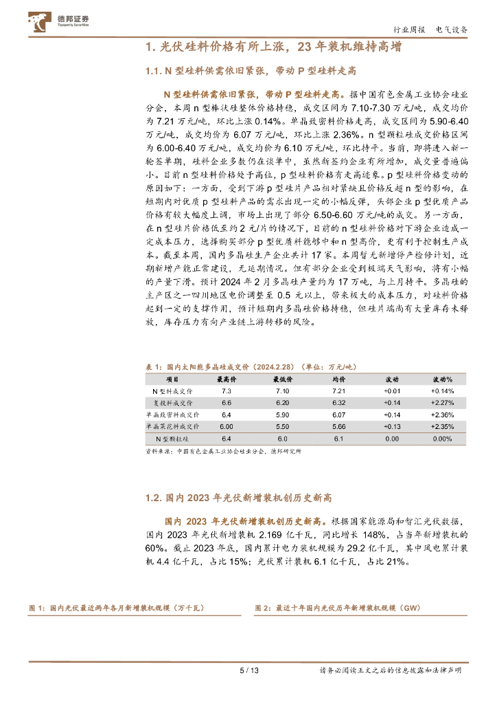 德邦证券:电气设备行业周报:光伏硅料价格有所上涨,23年装机维持高增.pdf