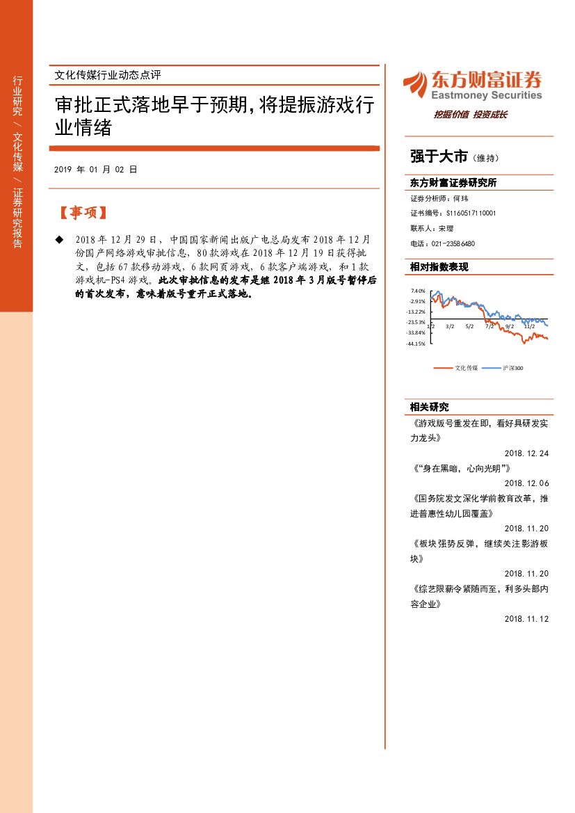 东方财富证券:文化传媒行业动态点评:审批正式落地早于预期,将提振游戏行业情绪.pdf